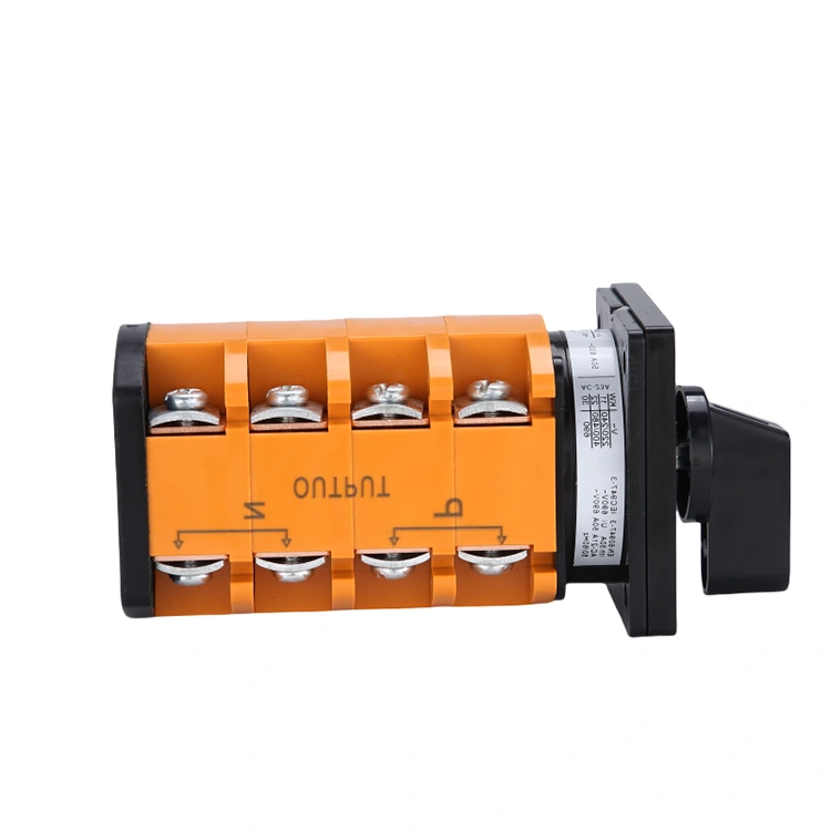 Questo interruttore è un robusto dispositivo elettrico utilizzato per realizzare la commutazione dell'alimentazione e del carico. Meccanicamente è costituito da un albero rotante, una camma, una sede di contatto, un meccanismo di posizionamento e una maniglia. Quando la maniglia viene ruotata su marce diverse, l'albero gira la camma, collegando o scollegando contatti specifici per controllare il circuito.